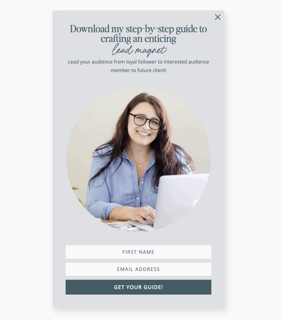 Pop ups work best when paired with a lead magnet. If you haven’t created one yet, here is a helpful guide to get you started.