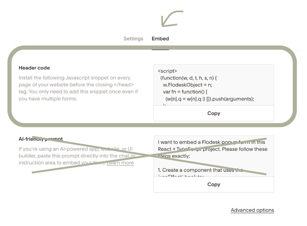 Just like with regular opt in forms, it may also generate AI-style instructions. Please do not send me those. I only need the actual embed code snippet. If you’re unsure where to find it, you can Google “Flodesk pop up embed code” or similar and it will walk you through it.
